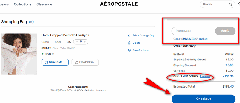 To redeem a free shipping code no minimum of Aeropostale: