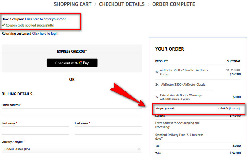 If a code fails, first review the fine print (minimum order, product exclusions, and region). Then try another AirDoctor coupon code listed as a working code, or fall back on sale pricing plus free shipping and loyalty or card rewards.