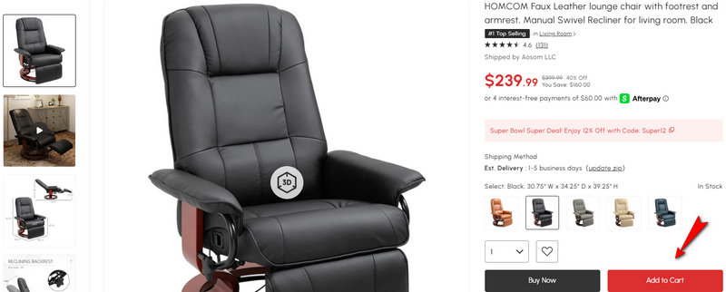 The Aosom checkout interface has been streamlined for 2026. Follow these steps to apply your savings: