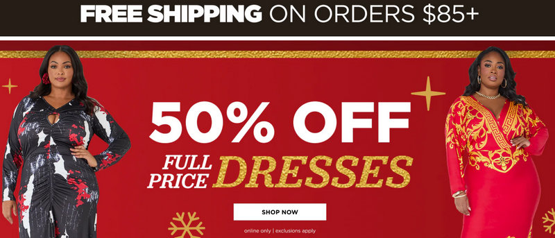 Email Sign-Up/ First-Order Offer | Around 15% OFF first purchase | Most full-price plus-size clothing and accessories |
