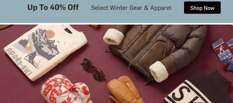 End-of-Season Clearance | Up to 60% off clearance | Last-season jackets, snow gear, hiking apparel, tents |