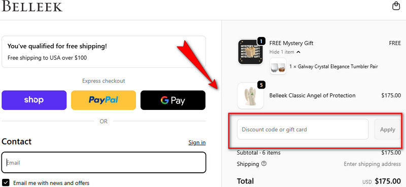 Applying a discount at us.belleek.com or belleek.com is a straightforward process: