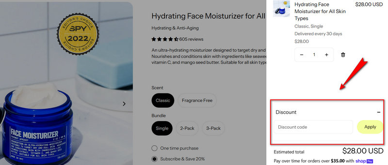 Choosing the "Subscribe & Save" option on essentials like the Volcanic Ash Gel Cleanser or 48-Hour Natural Deodorant provides an automatic 20% discount.