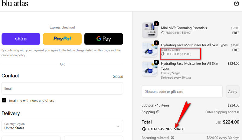 Check the Blu Atlas Promo Page for "Final Units." These are discontinued or overstocked items (e.g., Morning Recovery Serum or Aftershave), often discounted by 50% to 60%.