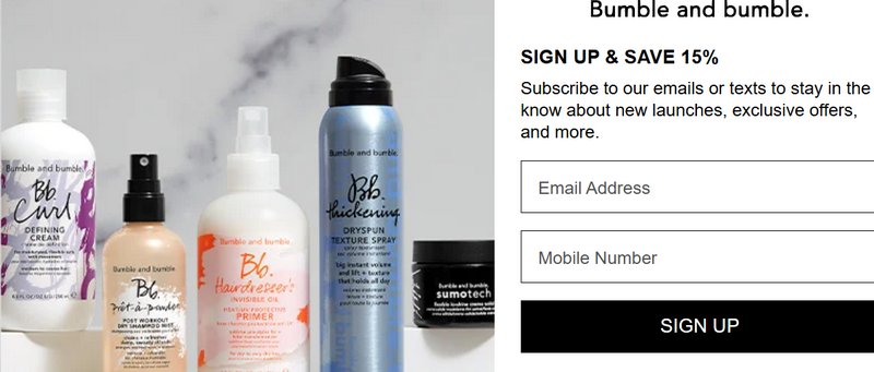 Sign up for Bumble and Bumble email to get Bumble and Bumble professional discount 15% off your first order.