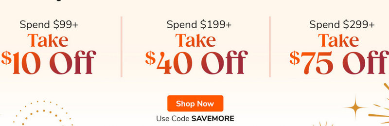 SAVEMORE | $10 off $99/ $40 off $199/ $75 off $299 | Bulk Restocks | Verified |