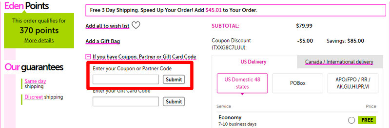 The most reliable code is EDEN15 (15% off first order). However, during seasonal peaks (Valentine's Day, Black Friday), the code XTRA20 often activates for a 20% sitewide discount.