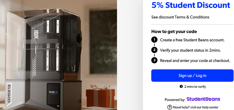 Excitingly, ELEGOO’s current verified student program provides a 5% discount through Student Beans, covering most 3D printers and STEM kits.