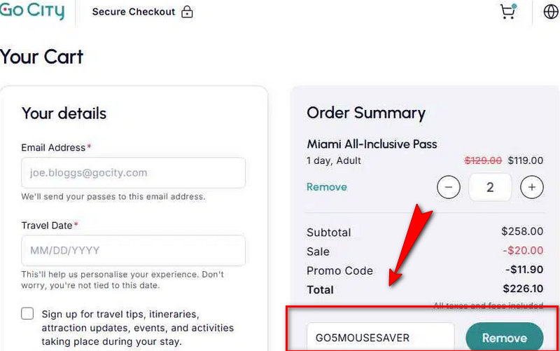Applying a Go City discount code is simple, but it must be done before completing the payment process. Follow these steps to ensure the code is applied correctly: