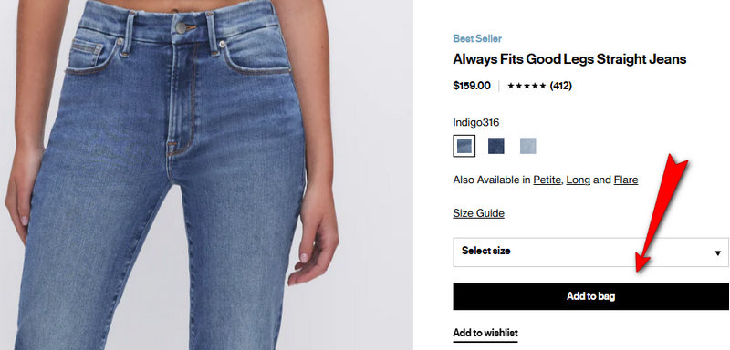 To secure a first-order discount, sign up for the Good American email newsletter or SMS alerts. You will receive a unique code for either $50 off your first pair of jeans or 15% off your entire first order.