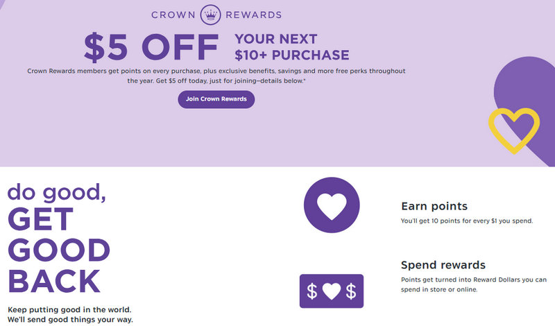 Luckily, one of the perks of being a Crown Rewards member is receiving special coupons and discounts, such as $5 off a $10 purchase. Occasionally, these offers may also include free shipping over $30 for Crown Rewards members.