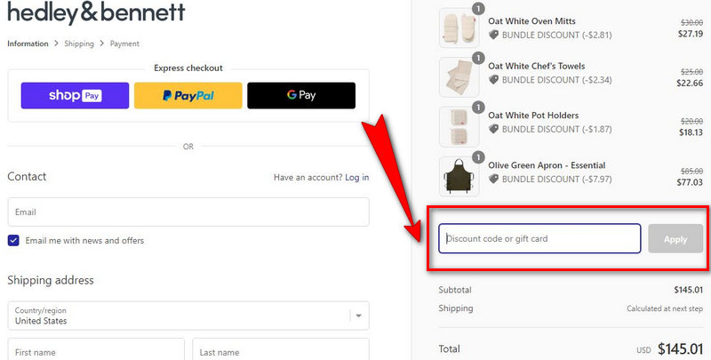 Knife/ Linens Bundles | Control over specific items (e.g., color/knife type) | Higher per-apron cost. | Use a sitewide Hedley & Bennett promo code on the bundle to maximize savings while guaranteeing preferred color/style. |
