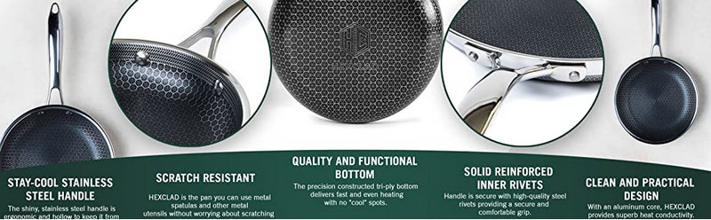Want the greatest, most cutting-edge, most distinctive hybrid cookware at home? With its cutting-edge stainless steel and aluminum multilayer technology, HexClad has you covered. This patented technology enables the pans to be used with any type of stove, including gas and contemporary magnetic cooker tops. HexClad cookware products are long-lasting and robust because they offer a superior nonstick effect, which also gives your food a beautiful browning effect and makes it easy to wipe away.