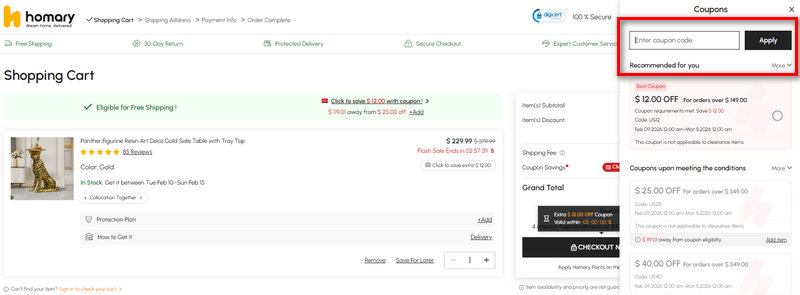 For large-scale projects like bathroom remodels or full living room refreshes, high-value coupons are the most effective way to stay under budget. In 2026, Homary frequently offers tiered discounts that scale with the cart total.