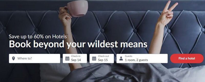 Booking through Hotwire can save up to 60% off last-minute hotel deals.