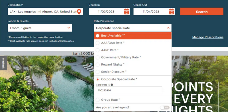Check-in Security | For employee/partner codes, be prepared to show your ID. Do not book a corporate rate for someone else unless you are traveling with them and will be present at check-in. |