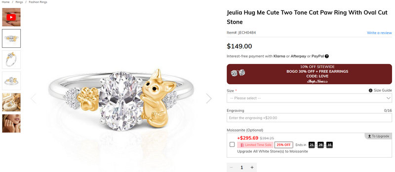 Jeulia's $45 off promotion is usually structured as a "Buy One, Get One $45 Off" deal. To use it, add at least two qualifying items to your cart and apply the specific event code (e.g., during the Halloween or Anniversary sales) at checkout.