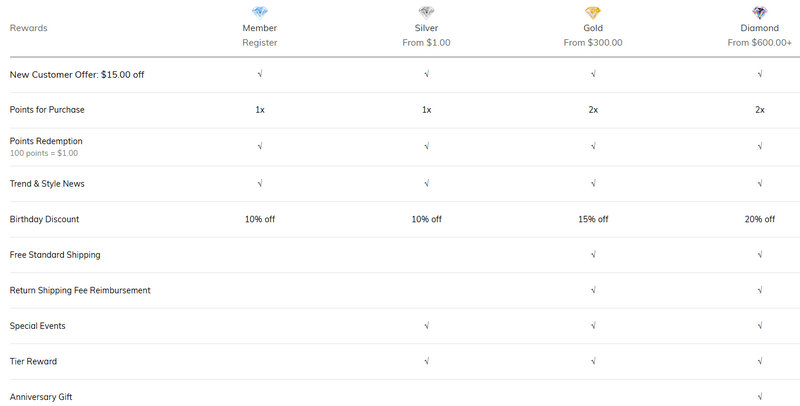 Jeulia automatically enrolls customers in a tiered rewards system. The higher the tier, the better the perks: