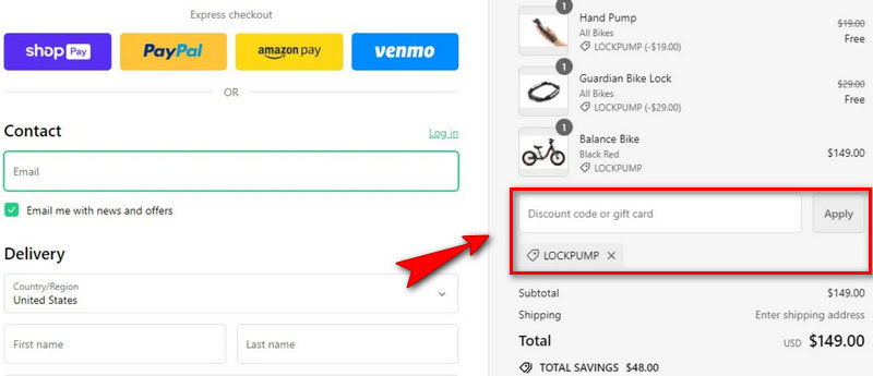 Applying a Juiced Bikes promo code is straightforward. Follow these steps to ensure the discount applies to the order total:
