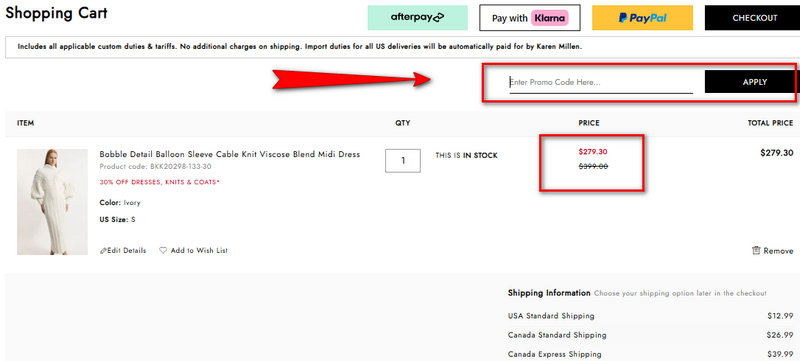 Important Note: Ensure you are logged into your Student Beans or UNiDAYS account on the Karen Millen site before attempting to apply the code at checkout.