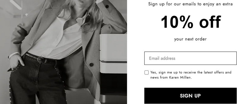 Sign up for the Karen Millen newsletter and receive 10% off your next order. Subscribers also get early access to exclusive offers, seasonal drops, and styling content.