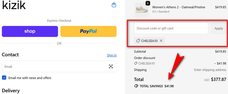 To ensure the Kizik 15% OFF code or any other discount is applied correctly, follow these verified steps: