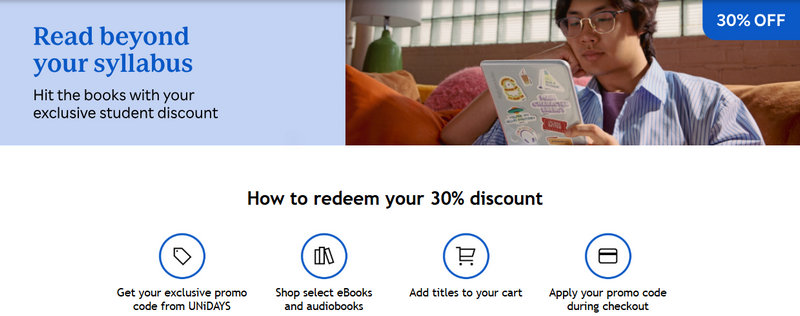 Kobo occasionally partners with verification platforms like UNiDAYS or SheerID to offer student discounts. Eligible U.S. students can receive limited-time promo codes for select titles.