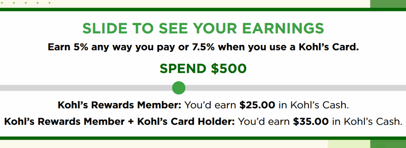 Kohls Rewards | 5-7.5% Off | Apparel, home décor, baby items, seasonal finds |