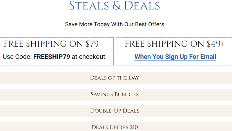 Tip: “No minimum” free-shipping codes are rare. Most official offers use $49 (email sign-up) or $79 thresholds; watch seasonal banners for exceptions.