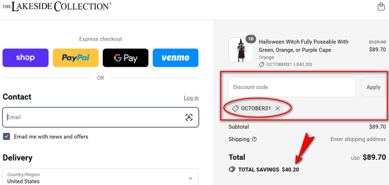 To save money with a Lakeside Collection promo code, just follow these simple steps: