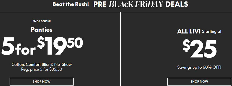 Semi-Annual Intimates & Cacique Event | 30–50% off | Cacique bras, panties, lingerie sets; fit-upgrade and stock-up periods. |