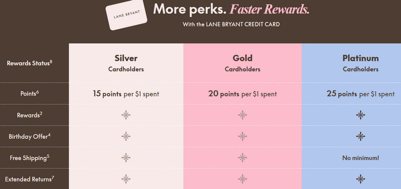 Lane Bryant offers exclusive Lane Bryant credit card offers to cardholders, including bonus points, rewards certificates, and an initial discount (often $20 to $40 off) on the first qualifying purchase made with the card.