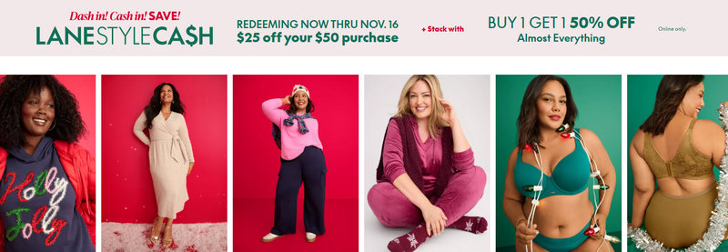 Lane Style Cash | Earn $25 Style Cash for every $50 spent | Broad apparel, Cacique intimates, Lane Bryant denim, dresses, workwear |