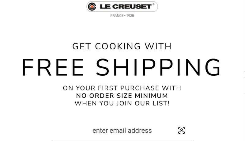 Sign up for Le Creuset email alerts directly on their official website. New email subscribers typically receive a Le Creuset promo code first order for up to 15% off, plus a Le Creuset free shipping code with no minimum purchase on that first order.