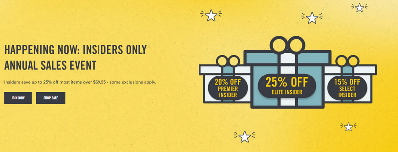 Insider Annual Sale | 15%–25% off | Sitewide for Loyalty Members (usually October) |