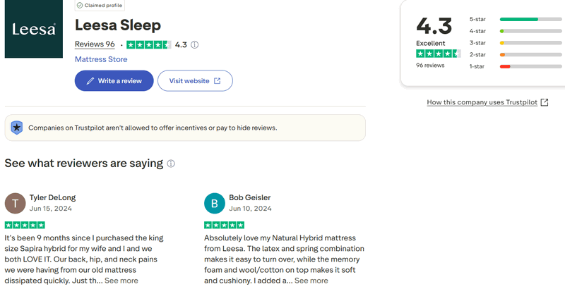 Leesa offers reliable and accessible customer support to ensure a smooth buying experience: