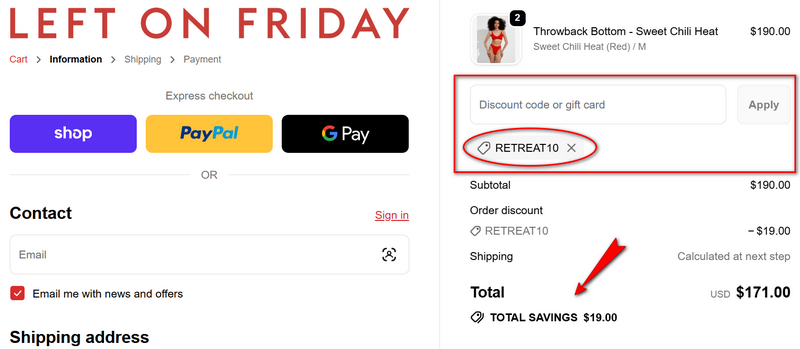 The easiest way for new customers to get a discount is by signing up for the Left on Friday newsletter. A unique code for $15 off a first order is delivered instantly to an inbox.