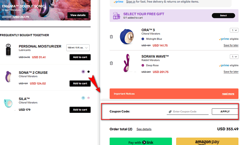 Paste the code into the promo field and instantly enjoy discounts on SONA Cruise, Soraya Wave, Hugo, Smart Wand, and more.