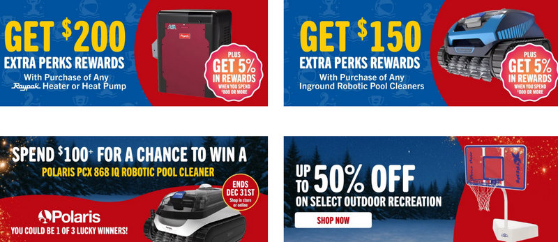 Price matching is often the most effective way to save on high-ticket equipment (pumps, filters, robotic cleaners), where promo codes are often excluded.