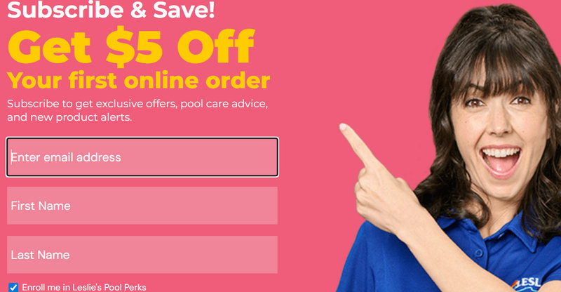 If you're a first-time purchaser, joining the email list will offer you a Leslie Pool $10 off sitewide. Simply go to LesliesPool.com to claim your voucher. Then, when a pop-up window appears, click "Get on the List." Enter your address, and your discount will be delivered to your inbox in a matter of minutes!