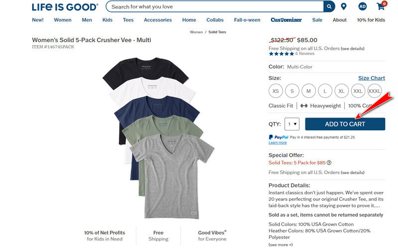 Visiting the Life Is Good website and browsing their selection of products, including clothing, accessories, etc. Once you’ve found what you’re looking for, click “Add to Cart.”