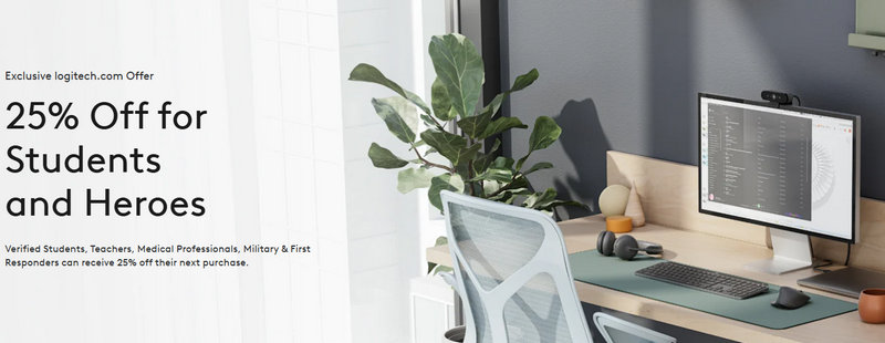 Year-round Student & Education Discount (SheerID / Student Beans/ UNiDAYS) | Up to 25–35% off selected items. | MX Keys, productivity mice, headsets, webcams, and most Logitech G gaming gear. |