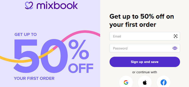 Sign up for Mixbook emails today and you'll get special Mixbook coupons 50% off and free shipping codes for your first order, exclusive discounts, sale announcements, and more delivered right to your inbox.