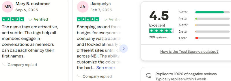 Here are real Trustpilot reviews from customers who successfully applied a Name Badges International coupon code 20% off sitewide or a free shipping code: