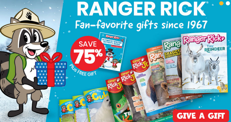 Ranger Rick Holiday Sale | $12–$18 per year (bundles lower); bonus printable gift | Ranger Rick, Ranger Rick Jr., Ranger Rick Cub subscriptions |