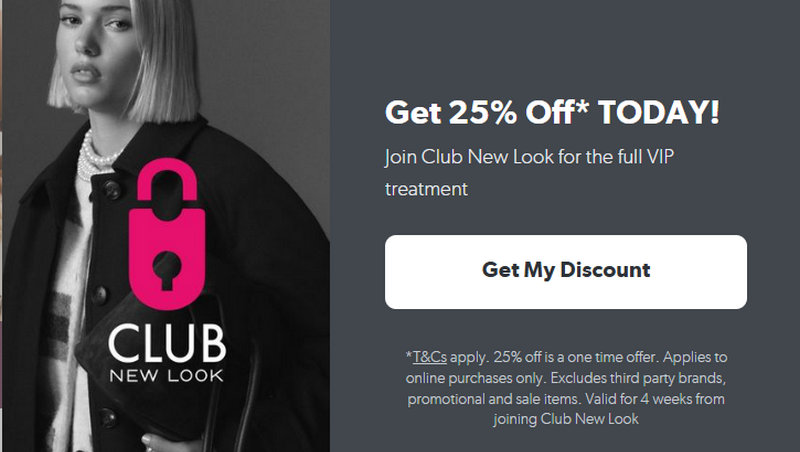 By signing up for the New Look newsletter, new customers receive a unique 25% discount code. This is typically valid for full-price items only and expires within 30 days.