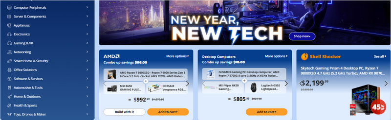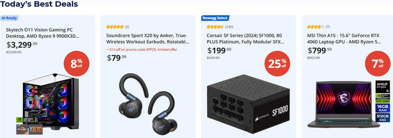 Founded in 2001, Newegg Commerce, Inc. is a tech-focused online retailer based in Diamond Bar, California, known for PC building essentials and a broad catalog spanning consumer electronics, gaming peripherals, and laptops. Its shopping ecosystem is built around rotating promotions, category sales, and time-sensitive deals that reward smart checkout timing.
