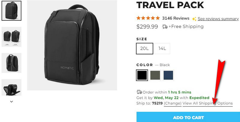 Avoiding shipping fees is the easiest way to lower the total cost of a Nomatic luggage purchase.