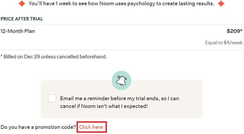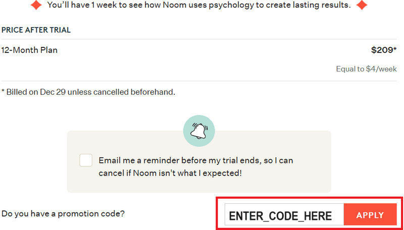 To apply a Noom promo code free 6 months on the checkout screen: