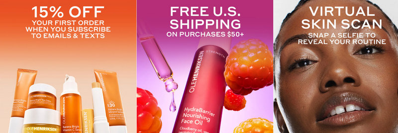 New customers who sign up for the Ole Henriksen email list or create an account will qualify for an Ole Henriksen 15% off code (often OLE15). This code is valid for the first order on the site.